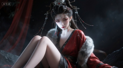 图片风格:用极致的高光死白制造视觉焦点,用明暗细节的对比拉满情绪张力,最终实现"强烈,锐利,有层次" 的视觉冲击,, 图片内容:电影级质感,电影级质感,绝美少女,白皙皮肤,睫毛弯弯,极致美瞳,体积光束,腿很修长,细节清晰,极致清晰,极致美学,对焦模糊,强侧光,高曝,red long upper shan,overexposure,暗调,伦勃朗光,强烈明暗对比,高反差,美女精怪,野性,妖艳,自然,长流苏头饰,发冠,双髻,长耳坠,robe,皮草,肌理质感,情绪氛围感拉满,奇特视角,胶片颗粒感,慢快门,朦胧美学,层次感,中式梦核,聊斋,, Negative prompt: ng_deepnegative_v1_75t,(badhandv4:1.2),EasyNegative,(worst quality:2),,nsfw, Steps: 40, Sampler: Euler, CFG scale: 1.0, Seed: 3195917999, Size: 1664x928, Model hash: 98763a1277, Model: Qwen-Image_1.0.safetensors, Denoising strength: 0, RNG: CPU, Lora 1: 【摸鱼】3D, Lora Hash 1: 2106c5bf96, Lora Weight 1: 0.8, Lora 2: 【摸鱼】3D电商渲染级KV海报_创意视觉表达, Lora Hash 2: ce1227b095, Lora Weight 2: 0.4, Lora 3: Qwen-Image-Lightning-8steps-V1.1-bf16.safetensors, Lora Hash 3: fe04c3ec1d, Lora Weight 3: 0.6, vae_name: automatic