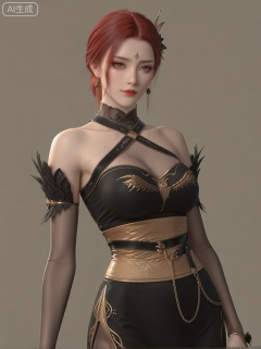 YF clothes, solo, exquisite skin, cowboy_shot, looking at viewer, even illumination, very awa, simple background,