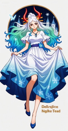 lvjing,1girl,dress,long hair,solo,skirt hold,hair ornament,jewelry,white hair,white dress,blue dress,necklace,full body,night,castle,butterfly,snowflakes,bug,flower,56, lvjing,lying,on back,high_heels,