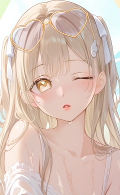 mmasterpiece,absurdres,best quality,petite,high quality,chromatic_aberration,//,1girl,one_eye_closed,solo,eyewear_on_head,looking_at_viewer,long_hair,heart,blush,wing_hair_ornament,parted_lips,hair_ribbon,ribbon,heart-shaped_eyewear,collarbone,white_shirt,hair_ornament,portrait,yellow_eyes,two_side_up,blonde_hair,white_ribbon,shirt,close-up,wet,off_shoulder,yellow-framed_eyewear,sunglasses,light_brown_hair,brown_hair,//,<lora:kinako_(shiratama_mochi)——【noob】hans:0.95>,