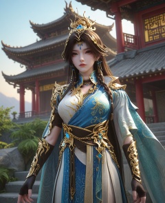 (oriental architecture, elegant decor, sophisticated style:1.1),(Widely opening legs, forming an inverted V shape,:1.1),(Directly from the front, capturing the full face and expression:1.1),(large breasts:1.2),<lora:XL16云深不知梦羲和第20集跃灵谷:0.95>,miss xihe,white and blue tiered hanfu,brown eyes,mole under left eye,black hair,very long hair,draped looped buns with front braid,hair ornament,jewelry,vambraces,black fingerless gloves,cape,sash,, score_9,score_8_up,score_7_up,score_6_up,score_5_up,score_4_up,3d rendering,tag1,tag2, Cinematic Lighting,backlighting,