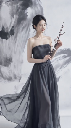 千问佳人,一位着墨色长裙的女子,立于抽象水墨笔触背景中,背景以黑白灰层次铺陈,她面容宁静,职业微笑浅淡,手中轻抚一枝梅,意境幽远,, , , Negative prompt: EasyNegative,nsfw,,nsfw, Steps: 20, Sampler: Euler, CFG scale: 4.0, Seed: 636521905, Size: 928x1664, Model hash: 98763a1277, Model: Qwen-Image_1.0.safetensors, Denoising strength: 0, RNG: CPU, Lora 1: qwen千问佳人, Lora Hash 1: ac0e909e71, Lora Weight 1: 1.0, vae_name: automatic