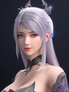 (score_9),solo,1girl,<lora:洛璃-A-pony-000008:0.85>,long hair,white hair,hair ornament,blue eyes,detached collar,bare shoulders,necklace,jewelry,gem,dress,detached sleeves,belt,pelvic curtain,collarbone,upper body,looking at viewer,light blush,cleavage,large breasts, BREAKsimple background,black background,