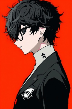 masterpiece,best quality,newest,absurdres,highres,safe,amamiya ren,shuujin academy school uniform,1boy,male focus,black hair,glasses,red background,solo,simple background,school uniform,black eyes,looking at viewer,jacket,hair between eyes,black-framed eyewear,black jacket,parted lips,turtleneck,upper body,grey shirt,short hair,profile,<lora:Mochi_style_v1-000048:0.8>,