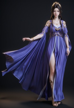 (standing full_body:1.1),(score_9:1.2),(score_8_up:1.2),(top quality, 8k wallpaper:1.1),(masterpiece:1.1),(best quality:1.2),(intricate details),8k,1girl,facing viewer,(looking at viewer:1.1),<lora:YQ_pony_ziling_V4:0.95:lbw=1,1,1,1,1,1,1,1,1,0.8,0.8,0.1>,q1528437228,1girl,solo,long hair,black hair,dress,jewelry,hair ornament,necklace,blue dress,purple dress,blue eyes,bracelet,detached sleeves,hair bun,brown hair,earrings,braid,single hair bun,mole,wide sleeves,sandals,purple eyes,mole under eye,tiara,long sleeves,pantyhose,BREAK(score_9:1.2),(score_8_up:1.2),masterpiece,best quality,very aesthetic,perfect anatomy,(hourglass),perfect face,(simple background,pure black background,black background:1.1),fair_skin,(shiny_skin:1.1),Ivory_skin,
