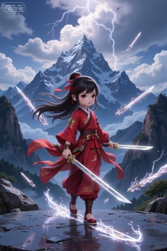 Anime-style digital illustration of a young girl with long black hair,wearing a red outfit with gold accents,holding a katana,surrounded by glowing swords,set against a dramatic mountainous landscape with a cloudy sky and lightning. The girl has a determined expression and is poised on a reflective surface.,, Negative prompt: ng_deepnegative_v1_75t,(badhandv4:1.2),(worst quality:2),badhandv4,,nsfw, Steps: 20, Sampler: DPM++ 2M, CFG scale: 3.5, Seed: 1227671447, Size: 1024x1536, Model hash: 8cba4f1ef4, Model: F.1基础算法模型-哩布在线可运行_F.1-dev-fp8.safetensors, Denoising strength: 0, RNG: CPU, Lora 1: 20250906-1757172058930-0005, Lora Hash 1: 441438c536, Lora Weight 1: 0.8, vae_name: automatic