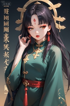 1girl,solo,long hair,black hair,hair ornament,long sleeves,dress,jewelry,upper body,earrings,hand up,wide sleeves,necklace,makeup,facial mark,looking away,chinese clothes,tassel,beads,green dress,shawl,forehead mark,red lips,hanfu,<lora: Xu'er Gufeng:0.8>,eyelashes,makeup,lipstick,tassel,pale skin,light eyeshadow,makeup,translucent,realistic,high detailed skin,(detailed skin:1.1),highly detailed,ultra-high resolution,32K UHD,sharp focus,best-quality,masterpiece,golden hour,unconventional supreme masterpiece,masterful details,temperate atmosphere,with a high-end texture,in the style of fashion photography,Dynamic Angle,(Dynamic posture:1.1), Negative prompt: (worst quality, low quality, very displeasing, lowres),(interlocked fingers, badly drawn hands and fingers, anatomically incorrect hands),blurry,watermark,,nsfw, Steps: 35, Sampler: Euler a, CFG scale: 6.0, Seed: 3188942403, Size: 1024x1536, Model hash: a3aeb59bbf, Model: 星美pony_写实动漫插画大模型_1.0.safetensors, Denoising strength: 0.0, Clip skip: 2, ENSD: 31337, RNG: CPU, vae_name: automatic