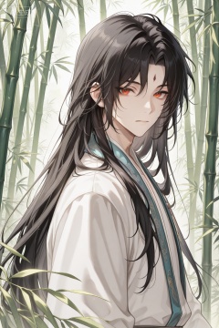 masterpiece,high score,great score,absurdres,1boy,male focus,solo,long hair,black hair,looking at viewer,chinese clothes,upper body,bishounen,bamboo,closed mouth,brown eyes,hanfu,outdoors,expressionless,parted bangs,leaf,, Negative prompt: (worst quality, low quality),deformed,distorted,disfigured,doll,poorly drawn,bad anatomy,wrong anatomy,sketch,jpeg artifacts,signature,watermark,artist name,old,oldest,,nsfw, Steps: 20, Sampler: Euler a, CFG scale: 5.0, Seed: 2864014517, Size: 1024x1536, Model hash: e62cd982e2, Model: 崩坏彩涂_1.0.safetensors, Denoising strength: 0.0, Clip skip: 2, ENSD: 31337, RNG: CPU, vae_name: automatic