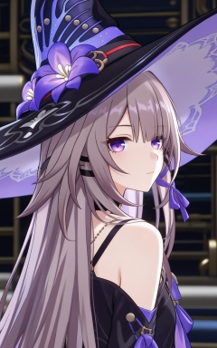 depth of field,masterpiece,best quality,very aesthetic,alternate costume,alternate costume,2024,2023,perfect composition,ultra-detailed,extreme aesthetic,masterpiece,best quality,good quality,newest,year 2024,year 2023,very aesthetic,absurdres,looking_at_viewer,colorful,upper_body,<lora:大黑塔·衣服百搭款ILL:0.8>,big herta \(honkai: star rail\),brown hair,long hair,purple eyes,witch hat,black headwear,hat flower,hair ribbon,purple ribbon,purple flower,jewelry,