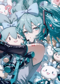 masterpiece,absurdres,best quality,petite,high quality,//,hatsune_miku,1girl,solo,cinnamoroll,character_doll,bow,?,shirt,hair_bow,necktie,looking_at_viewer,hair_ornament,detached_sleeves,aqua_necktie,heart,long_hair,aqua_eyes,number_tattoo,black_sleeves,sleeveless_shirt,bare_shoulders,aqua_hair,twintails,sleeveless,upper_body,blue_bow,hair_between_eyes,tattoo,skirt,hugging_object,:o,updo,fish_hair_ornament,holding_doll,miku_day,open_mouth,black_skirt,headset,heart_hair_ornament,arm_tattoo,grey_shirt,stuffed_toy,collared_shirt,blue_necktie,headphones,hugging_doll,parted_lips,belt,//,<lora:konya_karasue2——【CKXL】hans:0.85>,