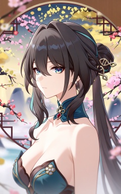 depth of field,masterpiece,best quality,very aesthetic,alternate costume,alternate costume,2024,2023,perfect composition,ultra-detailed,extreme aesthetic,masterpiece,best quality,good quality,newest,year 2024,year 2023,very aesthetic,absurdres,looking_at_viewer,colorful,upper_body,<lora:阮梅·衣服百搭款ILL:0.8>,ruan mei \(honkai: star rail\),black hair,long hair,multicolored hair,streaked hair,green hair,aqua eyes,blue eyes,hair_ornament,earrings,