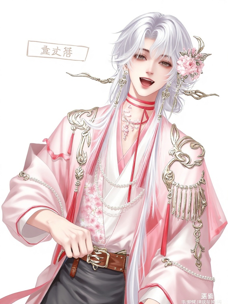 古风男版形象大全 - 白发粉衣妖艳男
