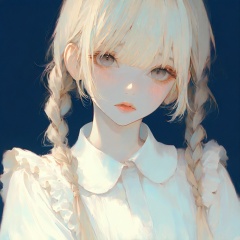 <lora:Tourun ThickPaint Style:0.8>,absurdres,realistic,rim light,wallpaper,best quality,1girl,solo,braid,twin braids,shirt,parted lips,long hair,looking at viewer,blue background,upper body,white shirt,bangs,simple background,blush,frills,blonde hair,lips,collared shirt,grey eyes,twintails,shy,