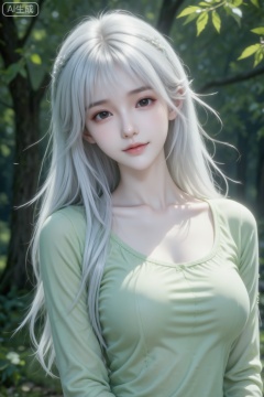 杰作级画质,顶级图像精度,超高清细节渲染,单人女性角色,(银白色亮丽的长发:1.4),(比例优越的纤细长腿:1.3),(肌肤白皙光滑的匀称美腿:1.4),(挺拔饱满的D 罩杯曲线:1.4),(精致立体的美颜五官:1.4),美颜全开,光滑油亮的皮肤,水嫩的肌肤,一个女孩,圣采儿森林治愈氛围,只穿一件浅绿色长袖上衣,侧身处春意浓郁的柳树背景前(绿叶茂密,光线透过枝叶形成斑驳光影),看着镜头姿态沉静(手撩头发,光影在面部与衣物形成明暗层次),透出清新治愈感;治愈质感,光线烘托(突出发丝光泽与衣物的柔和光影),人物头部特写(白衣与森林光影细节);美少女薇薇,玉骨冰肌,肌肤胜雪,绝世容颜,朦胧美,完美构图,高清质量(电影级面光:1.6),(光线追踪:1.5),(冷白皮漫感质感的光滑皮肤:1.7),(人物有最好的骨相:1.2),(网感脸:1.6),(网感妆:1.6)身材完美,莫兰迪配色,高颜值网红,INS风,幼态脸,19岁女生尖下巴,三庭五眼比例均衡,身材娇小,细腻陶瓷水嫩肌肤,偏冷白皮,随机的妆容,随机的动作,侧光,发丝轻飘,凌乱,随机角度拍摄,总体有很多的不确定性,但又好看,
