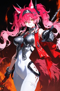 sola7764,[(yoneyama mai:0.6),(mika pikazo:0.6),(quasarcake:0.6),:(onono imoko:0.6),rei \(sanbonzakura\),(cogecha:0.8):12],1girl,lupa \(wuthering waves\),armor,black bow,bodysuit,bow,breastplate,breasts,collar,cowboy shot,hair bow,hair ornament,hairband,headgear,holding,holding polearm,holding weapon,large breasts,long hair,looking at viewer,metal collar,metal hairband,multiple hair bows,parted lips,pink hair,polearm,red pupils,red sash,sash,smile,solo,tacet mark \(wuthering waves\),tail,twintails,weapon,pointing at viewer,white bodysuit,wolf tail,yellow eyes,masterpiece,best quality,absurdres,