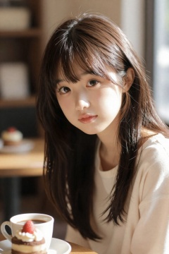 白皙通透皮肤,细腻真实肌理,自然光泽,无塑料感,五官精致,眼睛大且清澈,微微上挑,长睫毛,神情温柔或略带羞涩