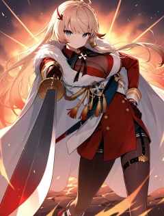 <lora:howe_IL_v1.0:1>,howe \(azur lane\),hand on own hip,holding sword,looking at viewer,foreshortening,incoming attack,fighting stance,, masterpiece,best quality,