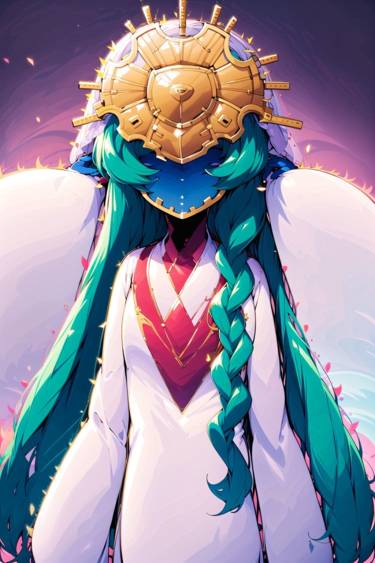 正面:Quantummom, 1girl, solo, veil, dress, green hair, pointy ears, white robe, white dress, wide sleeves, long sleeves, simple background, (blue skin:1.1), upper body, <lora:(人物量子兽v1 数码宝贝幽灵游戏)Quantummom:0.8>, paw pose,