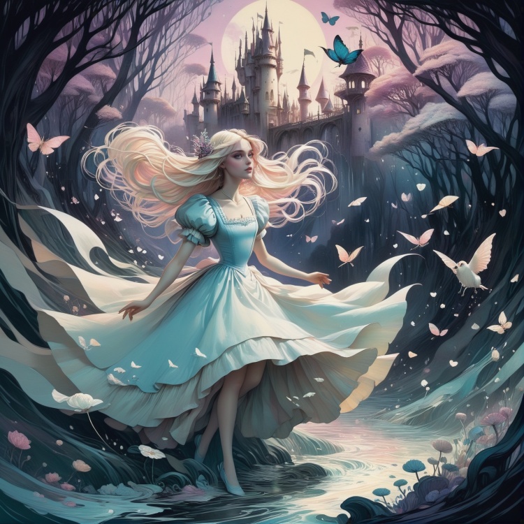 Geared towards (mainly female-focused) portraits in a subtly surreal illustration style with various types of decorative elements and lots of flowing movement.