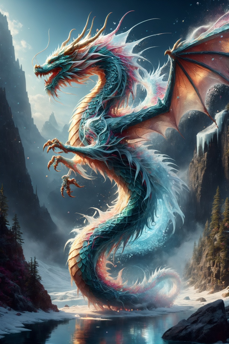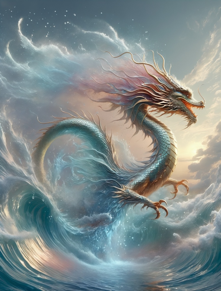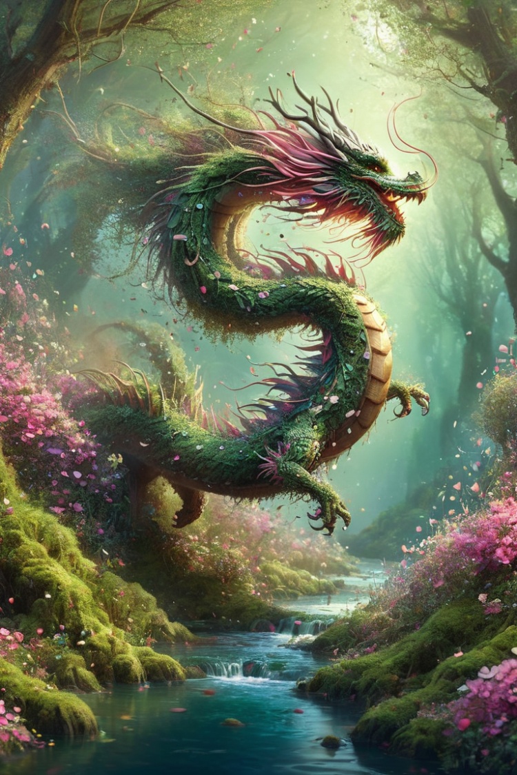 Picture a dragon flying over a city, sending confetti down to those celebrating Chinese new year below. Alternatively, imagine a nature dragon spirit leaving a trail of flower petals and clover leaves on the wind.