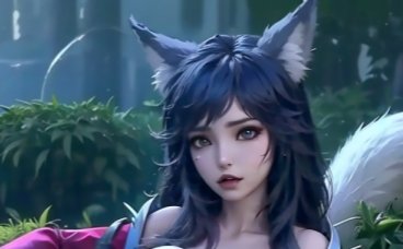 1girl, solo, long hair, breasts, blue eyes, large breasts, black hair, animal ears, cleavage, bare shoulders, medium breasts, upper body, detached sleeves, lips, fox ears, facial mark, whisker markings, korean clothes, ahri \(league of legends\)