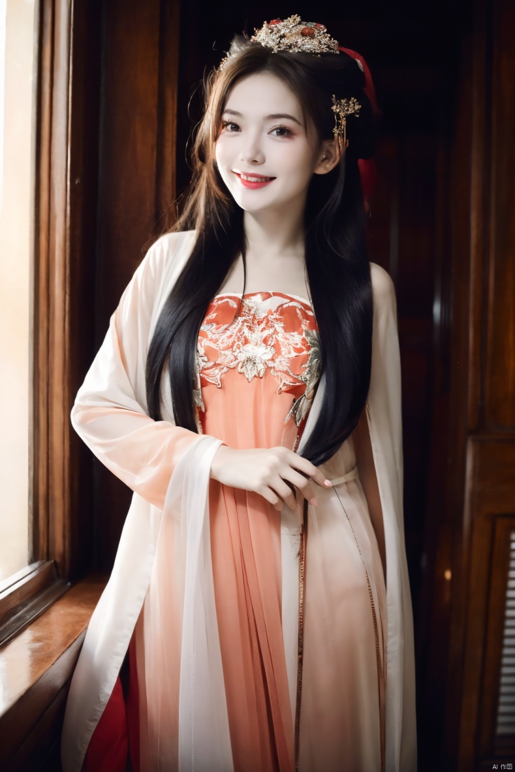 realistic, photorealistic, masterpiece, best quality, dark shot, (photo of portrait:1.2), cowbody shot,1girl, solo, smile, looking at viewer, long black hair, Full-body photos,(wearing a red Chinese wedding dress:1.4), (an ancient bride adorned with gold hairpins and silver jewelry), an extremely delicate and beautiful,real person, fair skin,((long legs)), plentiful,breasts,(see-through:1.4) (colorful:1.2) cns_dress, (floral print:1.2), (Standing on the Great Wall:1.4), dynamic pose, colorful cloud, incredible beautiful sky, netural lighting, dynamic Angle, bokeh, Chiaroscuro,(Black suspender stockings:1.2)