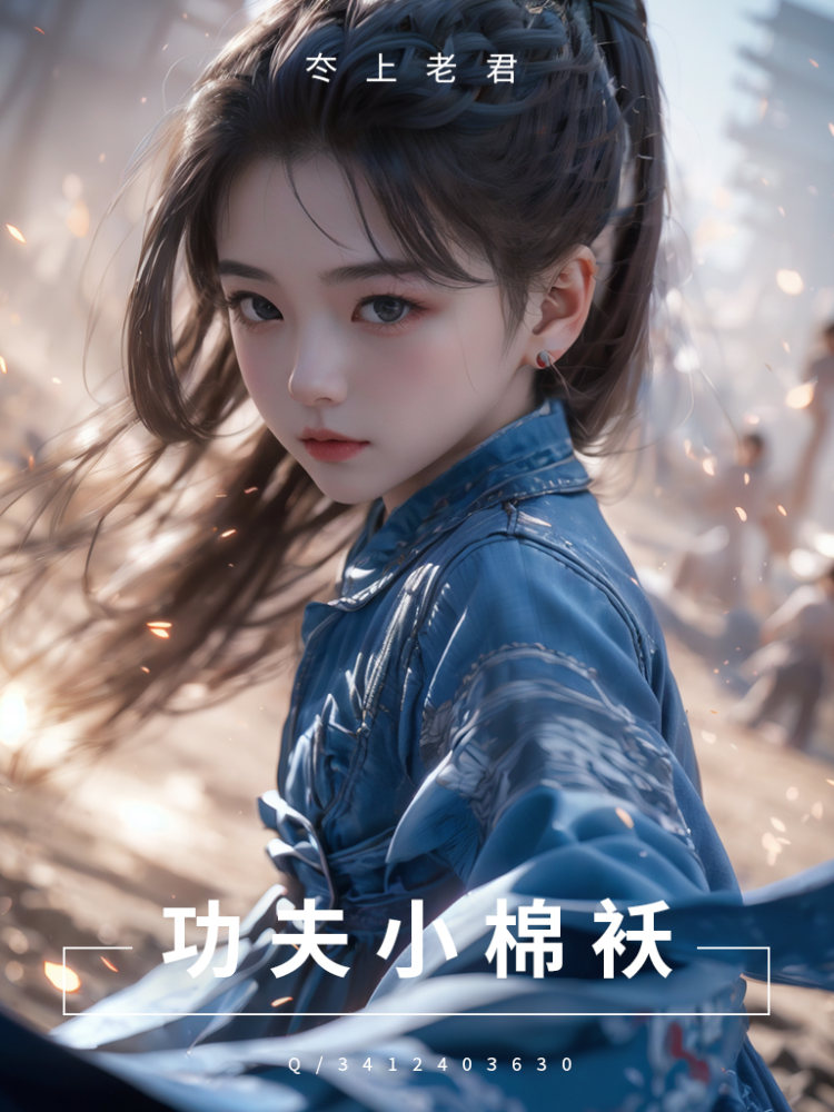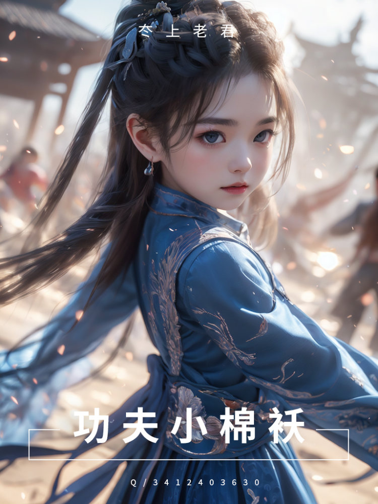 在蔚蓝的天空下,一位身着蓝色传统服饰的小女孩正翩翩起舞。她的身影犹如一幅动人的画卷,充满了武侠与国潮的韵味。