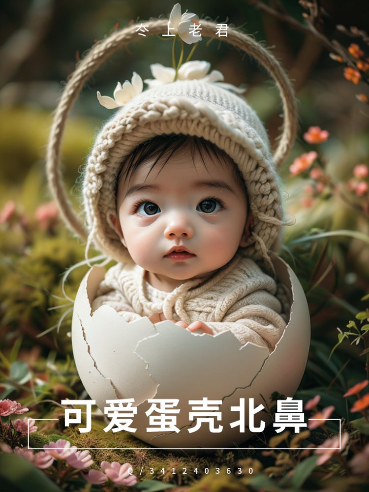 一个巨大的蛋壳映入眼帘,蛋壳表面光滑而圆润,散发着柔和的光芒,仿佛是由月光和星辰凝聚而成。在蛋壳的******,坐着一个可爱的宝宝。