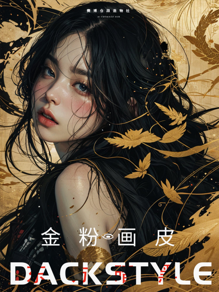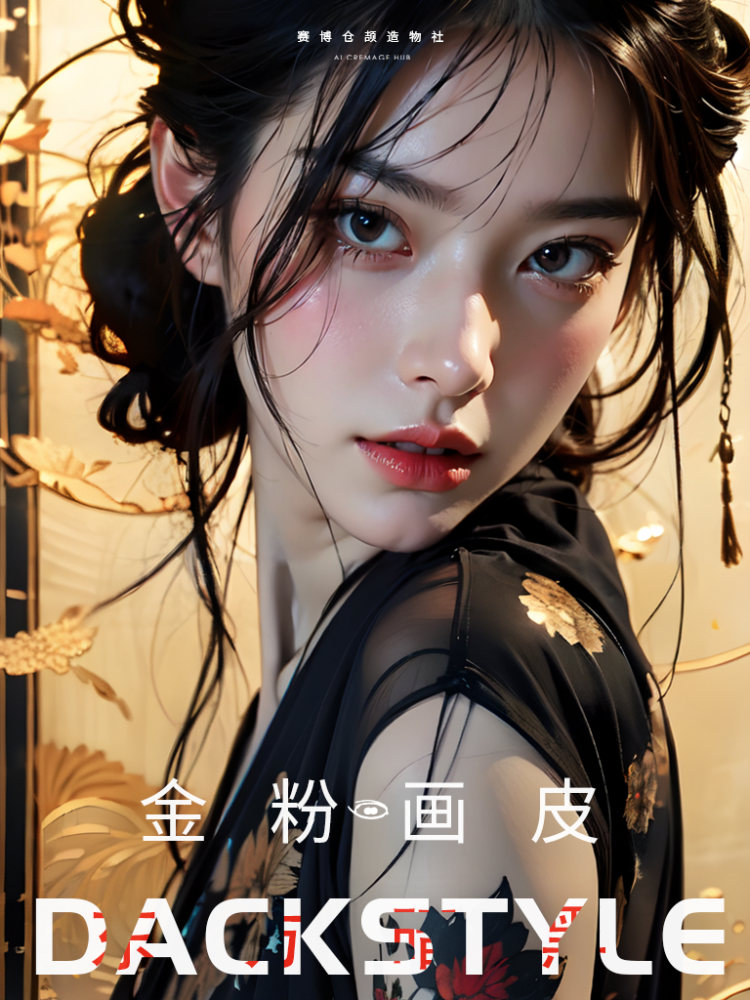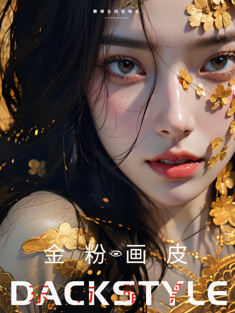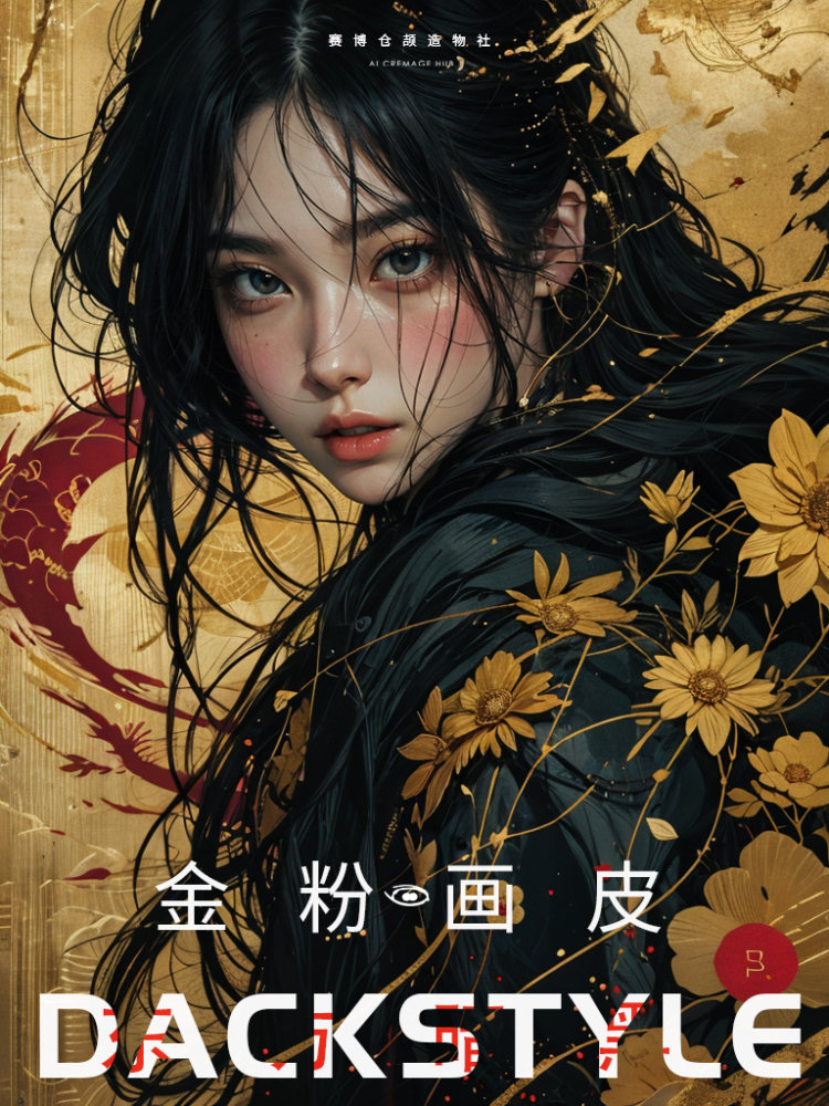 这一LoRA模型展现金粉画皮少女,金色的光泽与她的黑衣形成鲜明对比,铂金飞舞的花朵图案,如同未完成的花卷,和你一起融入画中。