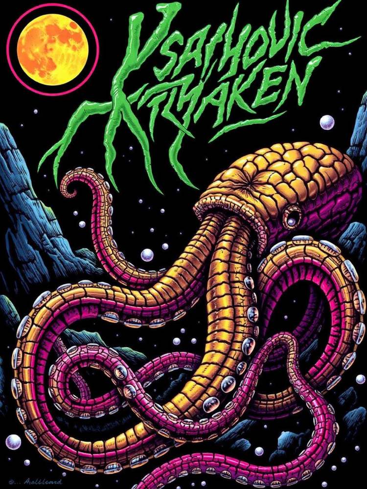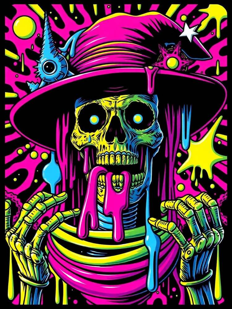 Useful tags: Flourescent, concert poster, drips, snot art, lowbrow, zombie, neon, grotesque, slime, oozing, snotty, lsd trip, trippy