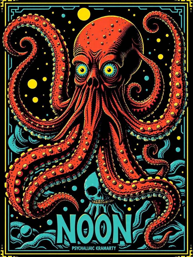 I collected a dataset of all sorts of images for this experimental LoRA; acid art, psychedelic stuff, lowbrow illustration, concert posters, horror tarots, snot style illustration, blacklight illustrations. Ended up with a very fun LoRA that I haven't figured out myself really.