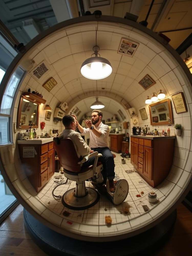 “Life in the Round” is a series of intricately detailed, tunnel-like dioramas that capture the beauty of everyday moments, each set within a unique circular enclosure. These miniature scenes, ranging from a bustling barbershop to a quiet bathroom retreat, offer an immersive, 360-degree perspective on the simple yet profound experiences of daily life.
