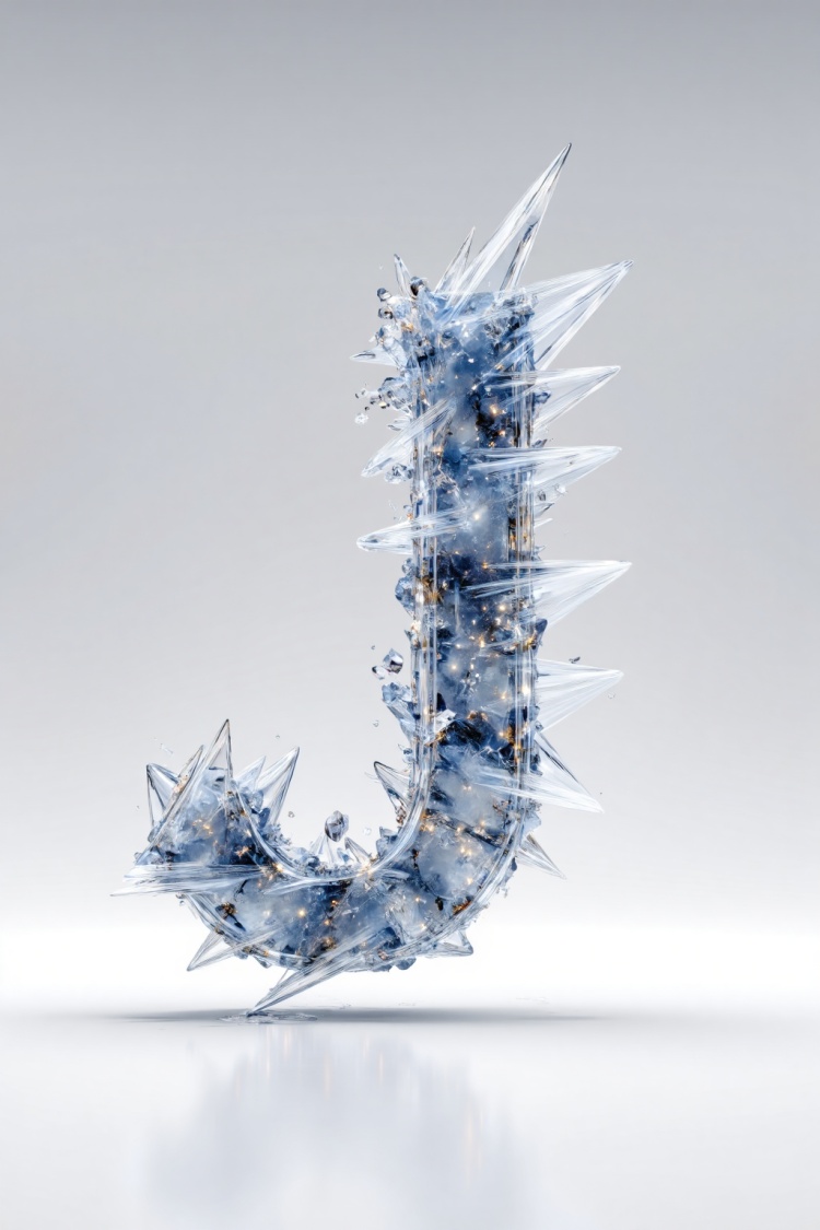 带有冰霜质感表面的锯齿状冰碎片,冷蓝色折射与锋利晶体边缘,