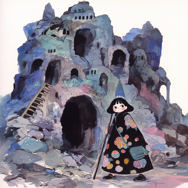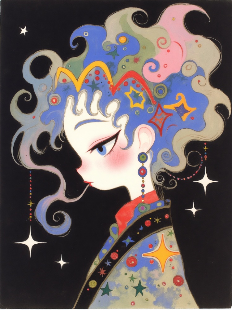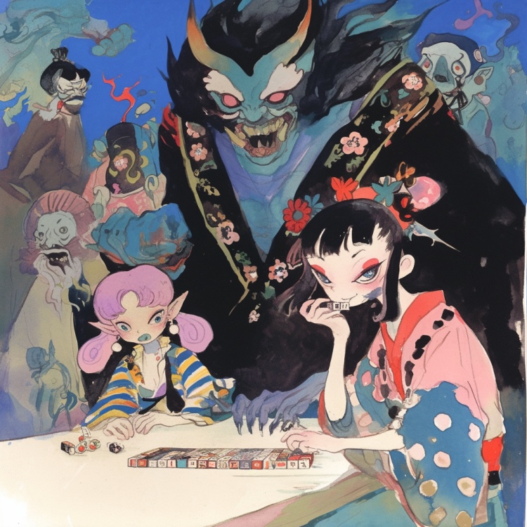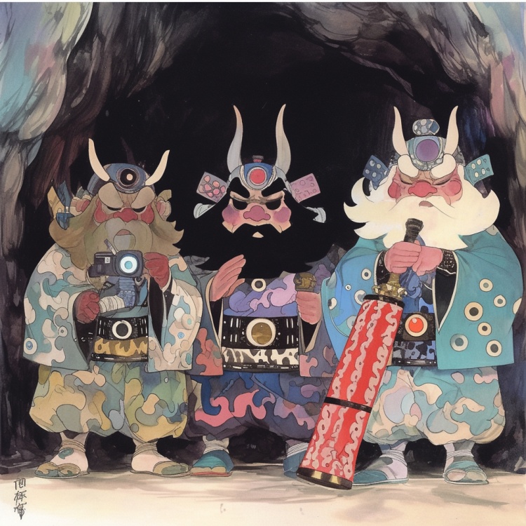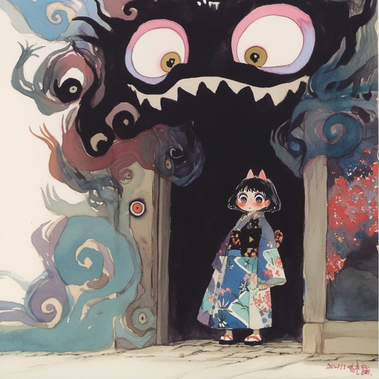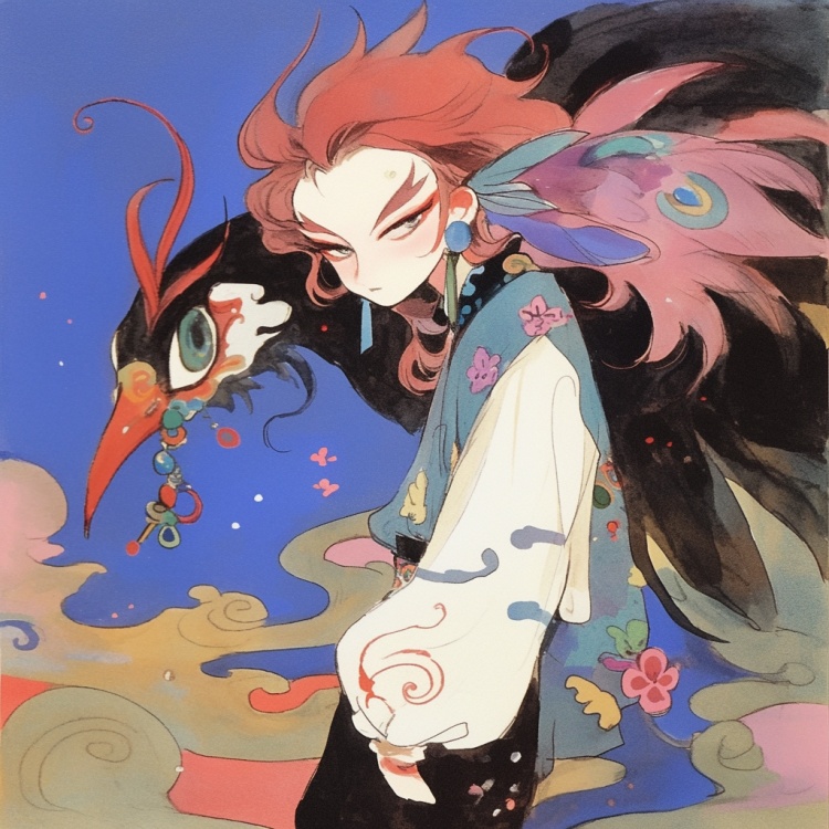 风格特点:风格融合了传统东方元素与奇幻艺术,充满浓郁的怪诞美感和细腻的手绘质感。画面色彩鲜艳但不失柔和,人物与场景设计富有想象力,展现出幽默、神秘与超现实的氛围,同时带有浓厚的文化符号与故事性。
