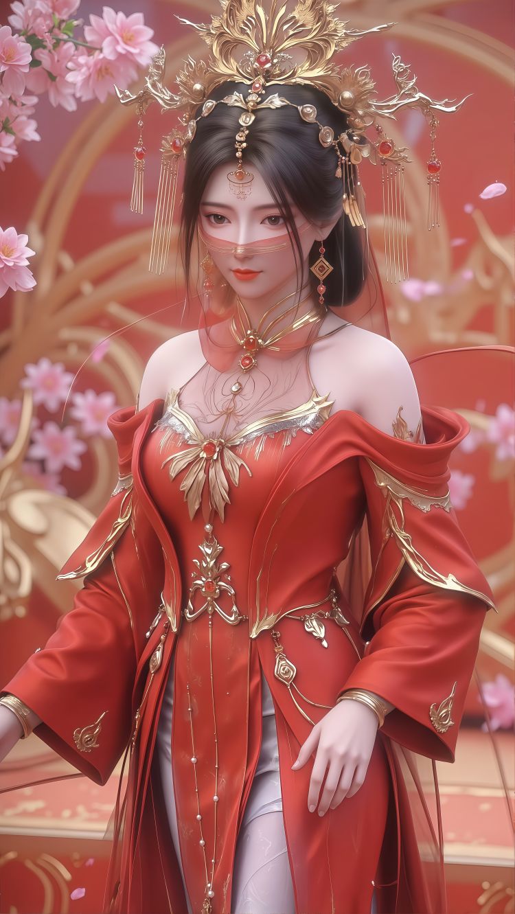 -Color: The main color tone is red, symbolizing joy and honor, and is paired with a large number of gold patterns to highlight grandeur and ceremony.