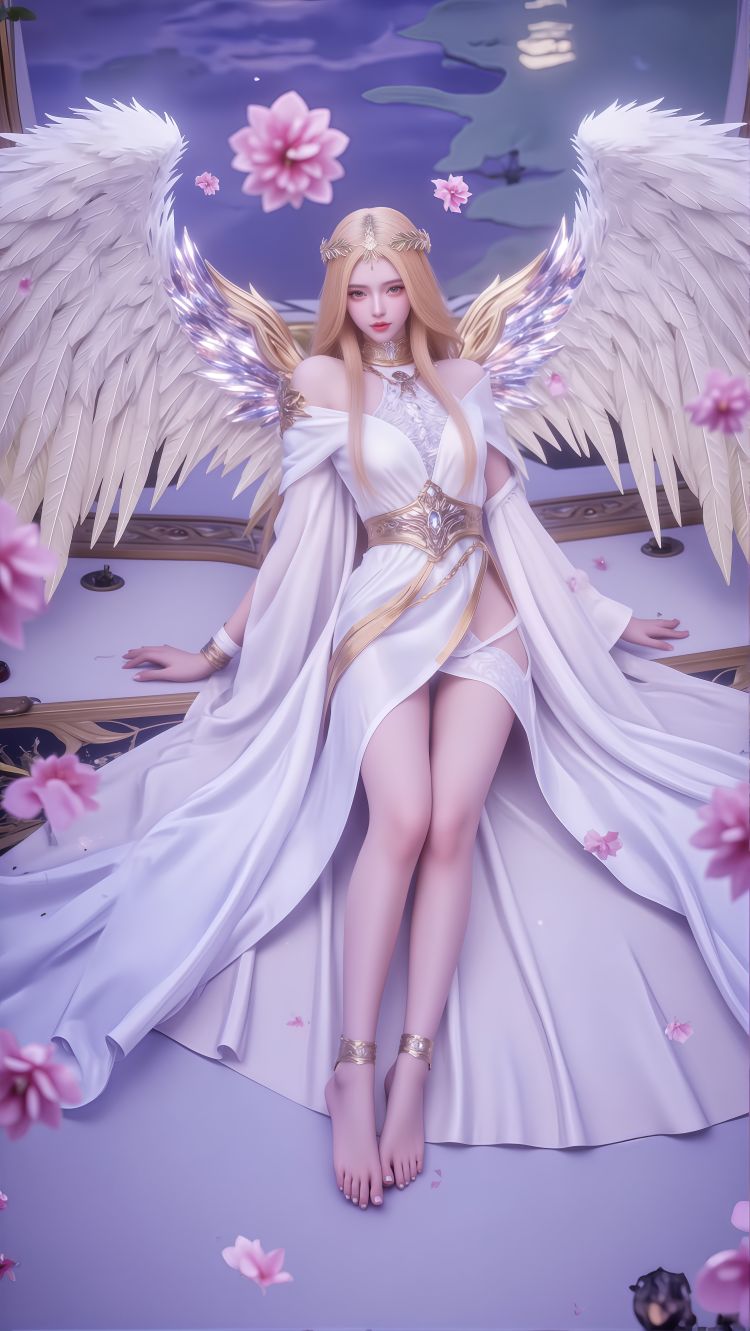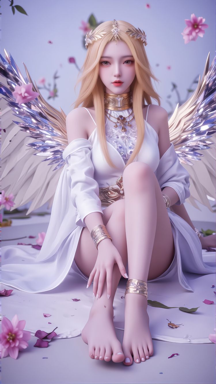 -Shooting perspective: There are front, side, close-up (such as facial and hair accessory close-up), full body distant view, etc. The close-up highlights the delicate facial features and decorative details of the character, while the distant view shows the overall atmosphere of the character with a fantastic background and huge wings. The side view presents the body lines and wing layers.