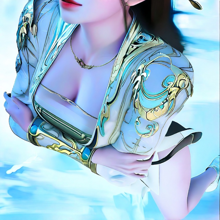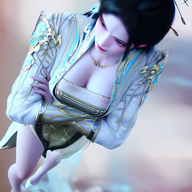 1girl,dress,breasts,belt,chinese clothes,white footwear,bare legs crossed arms,,downblouse,single hair bun,index finger raised,long sleeves,center opening,parted bangs,nipple piercing,nipple slip,areola slip,boots,solo,nipples,see-through,covered nipples,