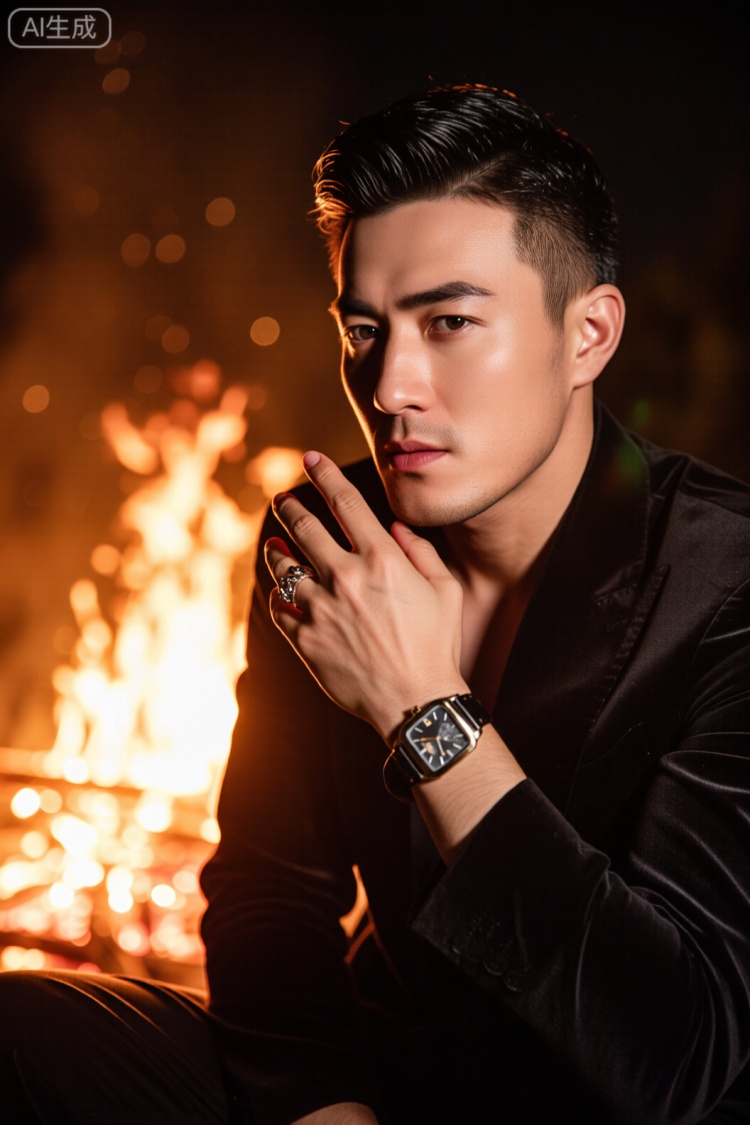 示例: 男性,瞩目这位堪称完美的30岁性感型男模特,穿着凸显身材的时尚紧身衣,配合自信且诱惑的姿态,散发着无尽魅力,写真风格打造奢华杂志风,光线使用多光源组合,主光突出主体,辅光补充暗部细节,营造丰富光影层次,渲染着重展现精致感,皮肤光泽与衣物亮片等细节清晰呈现,色彩以金色,银色与黑色为主,营造奢华贵气氛围,构图采用中心汇聚构图,让所有目光聚焦在模特身上,以微微俯拍视角拍摄,展现整体造型与身材优势,凭借专业摄影参数设置,拍出高水准,充满杂志氛围感的写真大片,