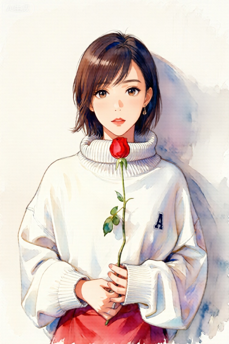 以细腻的笔触展现了现代女性的多元魅力。通过不同的服饰搭配与场景设置呈现各具特色的气质:从白色针织毛衣的温婉、黑色V领上衣的知性,到红裙捧玫瑰的明艳,每幅画作都精准捕捉了人物瞬间的神态。画面运用柔和的光影与淡雅色调,将水彩特有的透明质感与写实人物造型巧妙结合,背景或简练或朦胧的处理方式更凸显主体形象。系列作品在保持统一艺术风格的同时,通过服饰细节(如珍珠耳坠、花朵项链、红色手表)与动态设计(托腮、捧花、侧望)等元素,构建出充满生活气息的视觉叙事,展现出插画艺术在表现女性柔美与内在情感方面的独特魅力。