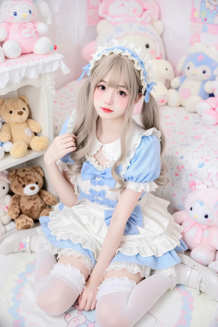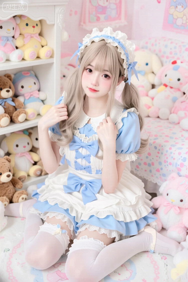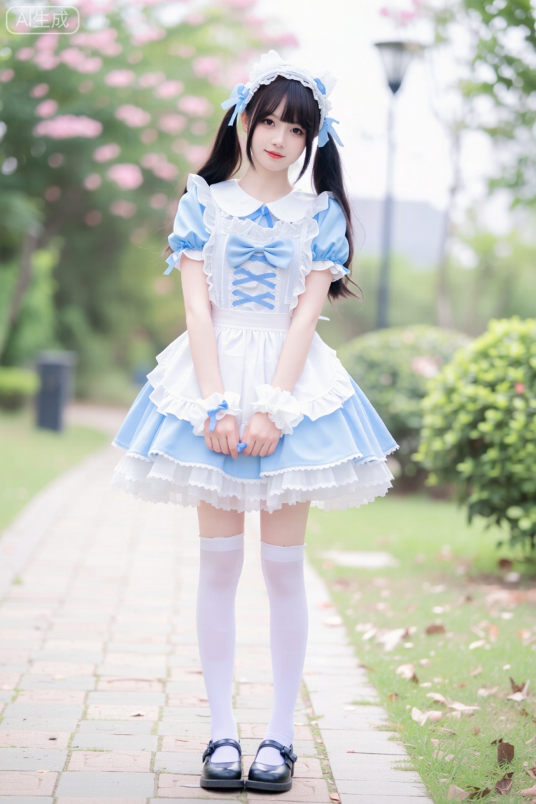 这些模型围绕小萝莉服装主题打造,服装风格甜美可爱,以蓝白配色为主,带有精致的蕾丝、蝴蝶结等元素,尽显少女的娇俏与纯真。搭配的白色过膝袜、可爱的头饰,进一步强化了甜美感,营造出梦幻的萝莉氛围,仿佛将人带入童话般的世界,很符合大众对萝莉风服饰可爱、软萌的审美期待,无论是在室内与玩偶相伴的场景,还是户外清新的环境下,都能展现出独特的魅力,深受喜爱甜美风格人群的青睐。