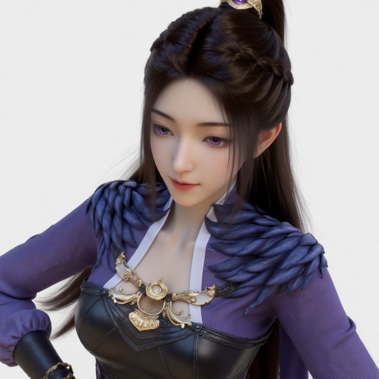 1girl,black hair,purple eyes,long Hair, brown hair,upper body,masterpiece ,bestquality,dress,braid hair bun,