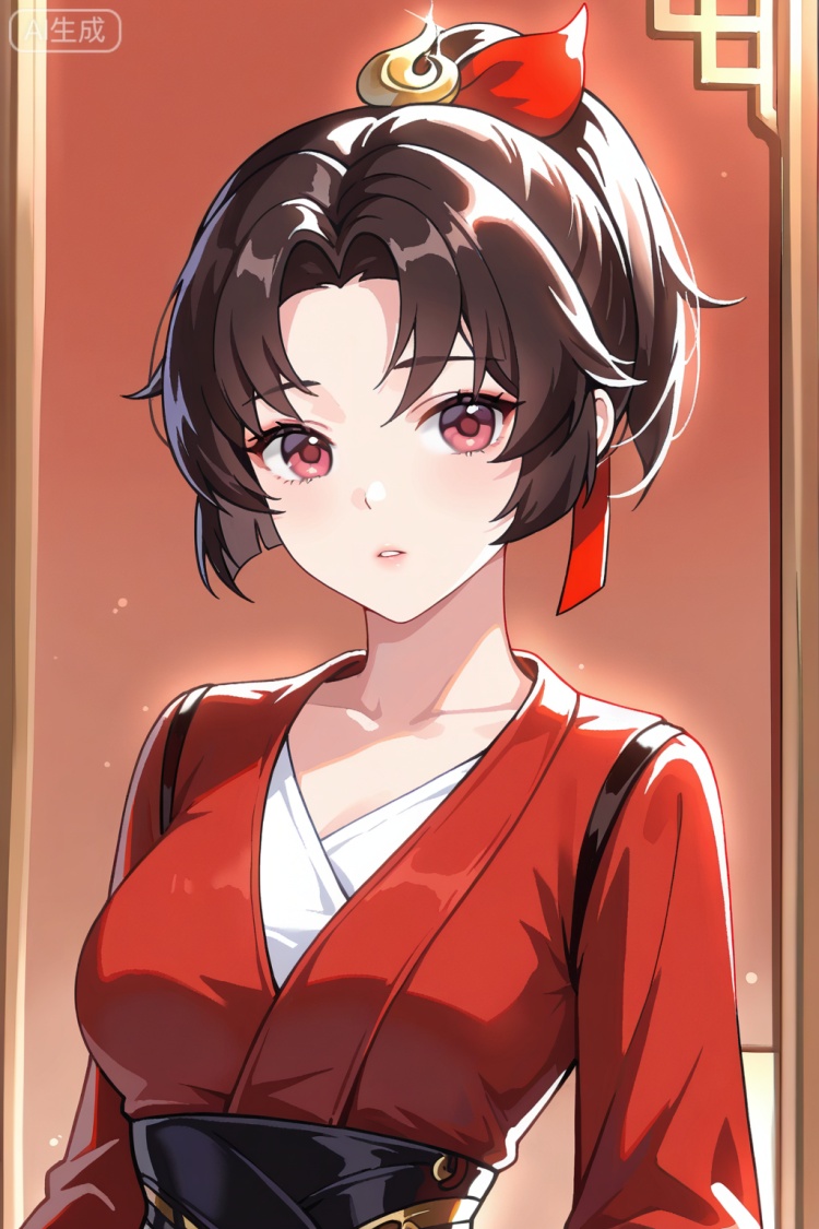 云缨,masterpiece,very awa,best quality,amazing quality,very aesthetic,absurdres,newest,intricate details,skindentation,fair_skin,kpop idol,korean beauty,1girl, solo, brown hair, black hair, hair ornament, red eyes, long sleeves, dress, chinese clothes, red dress, hanfu,