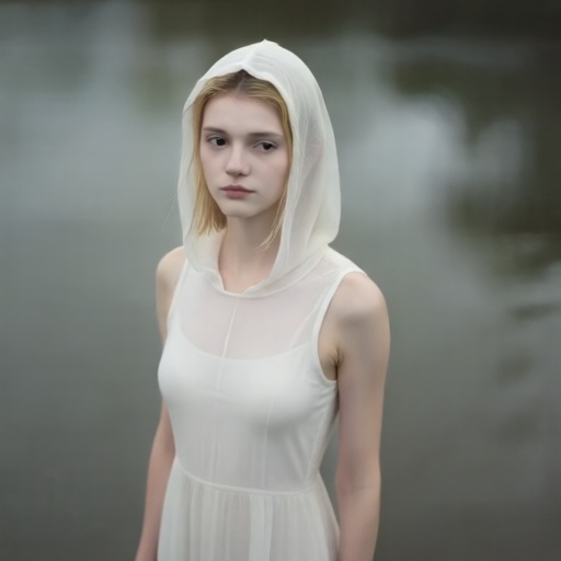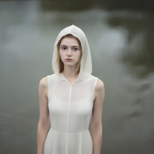 Create an image in the style of Rococo (French loanword) featuring a beautiful girl. She wears a white dress that blends modern trends with traditional elements, adorned with delicate floral patterns. Her hairstyle is decorated with a red flower, and she wears teardrop-shaped earrings with a hint of green. A small colorful bird perches on her shoulder, while another bird flies nearby. The background consists of large, soft leaves, creating a serene and natural atmosphere. The color palette is soft and harmonious, with green, white, and subtle shades, evoking a gentle and elegant mood.