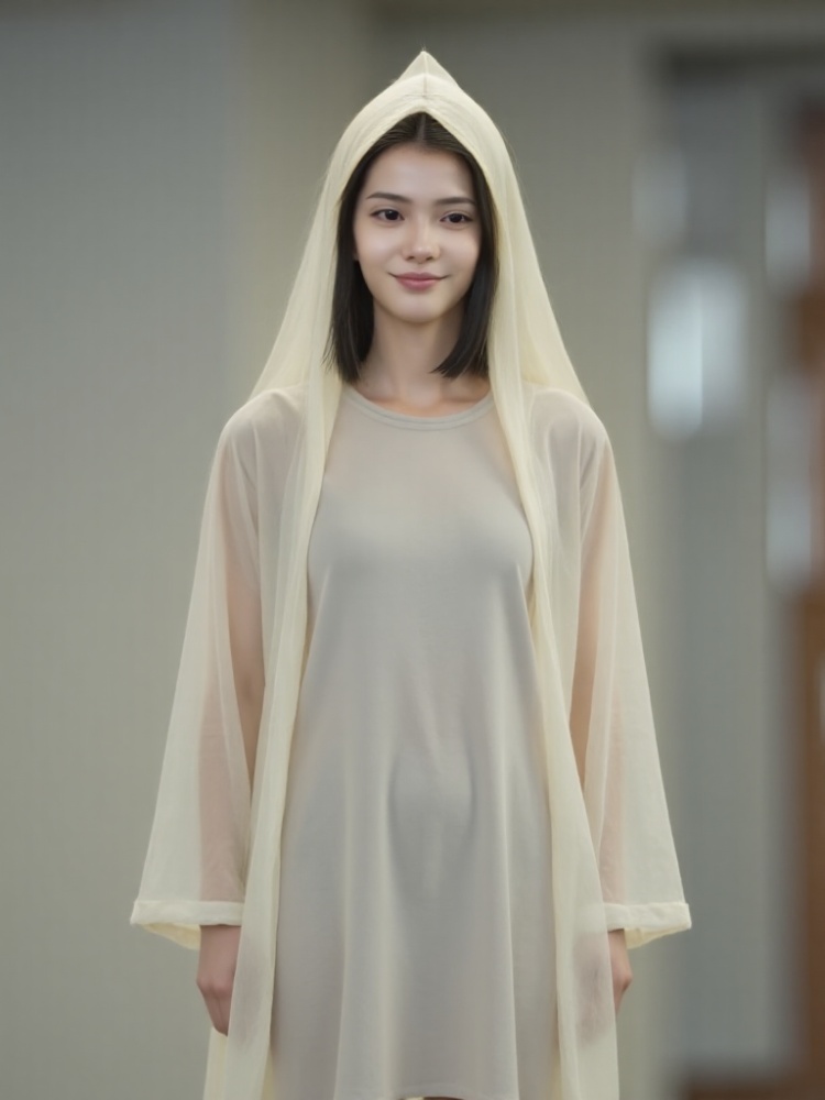 Photo style, textured lighting, natural light, rich texture, photographic style, extreme details, high-end feel. The image features a pale-skinned, melancholic and seductive girl, with pale and delicate skin, eyebrows slightly lowered, showing a lazy and hazy expression, wearing a black coat, long black hair slightly disheveled in the wind, deep eyes staring at the lens, fingers entwined with a strand of hair, medium to long shot, upper body, some strands of hair covering the front, a hazy atmosphere, hands in the coat, background is a clear blue sky, a group of seagulls flying in the sky above the sea, and a stranded cruise ship in the distance. The image uses shaking, Gaussian blur, and motion blur effects to create a surreal atmosphere, the high flash exposure makes the image overexposed and blends with the background.