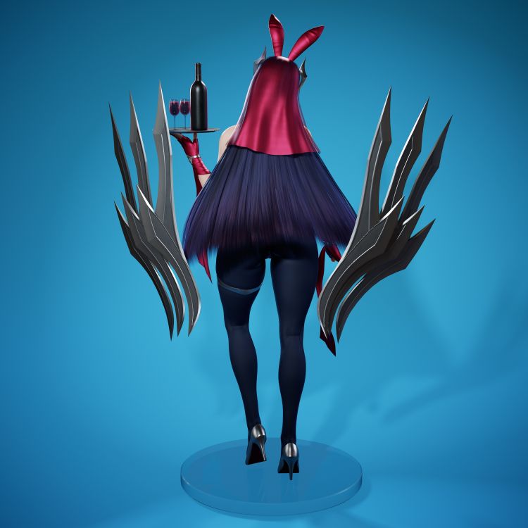 1girl,solo,<lora:艾瑞利亚-Apony-000008:0.83>,arily,bunny girl,dark purple hair,long hair,hair ornament,bunny hair ornament,blue eyes,------注释人物固有属性choker,forehead ornament,playboy bunny leotard,pink leotard,tight legwear,fingerless gloves,high heels, ----注释衣服,可以删掉换成自己喜欢的服装BREAK