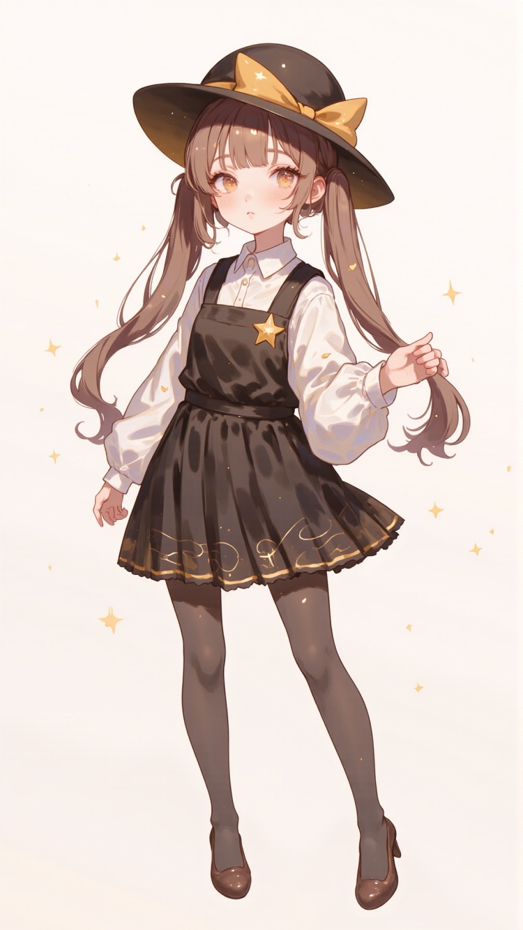 nanguanatie.1girl,solo,dress,striped,high heels,twintails,pantyhose,brown hair,hat,long sleeves,standing,long hair,looking at viewer,(masterpiece:1.2),best quality,highres,extremely detailed CG,perfect lighting,8k wallpaper,