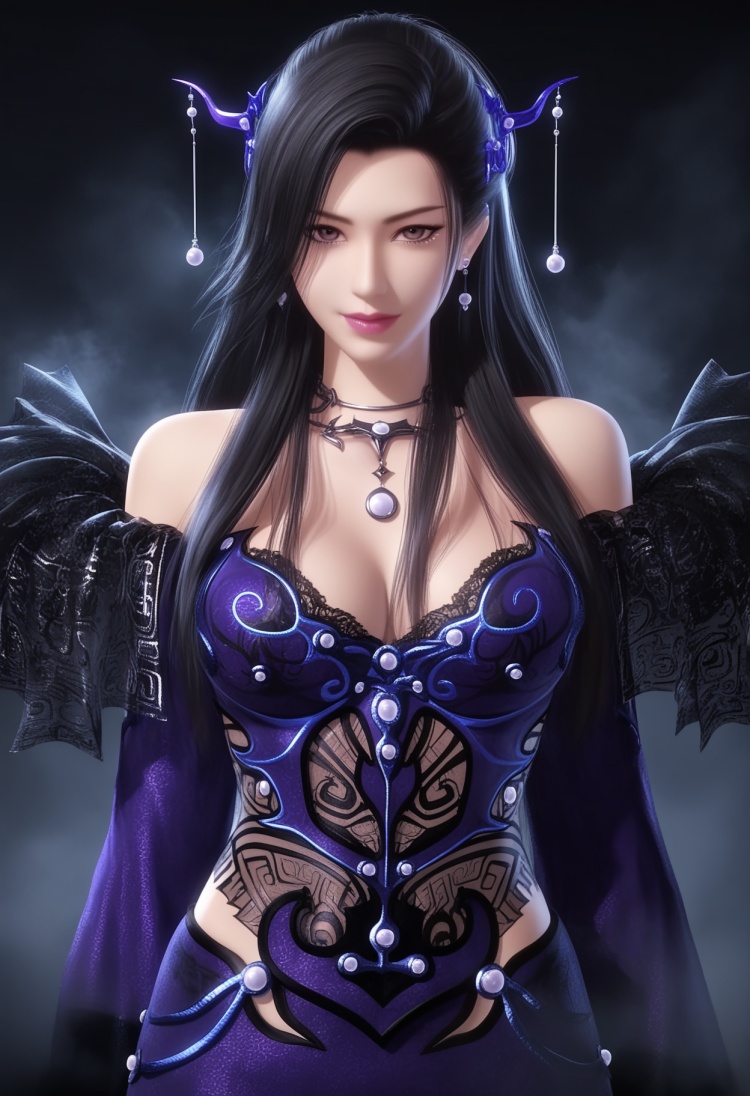 <lora:潮女妖-ill-000008:0.83>,1girl,solo,long hair,black hair,makeup,jewelry,hair ornament,necklace,earrings,-----注释:人物特征-----