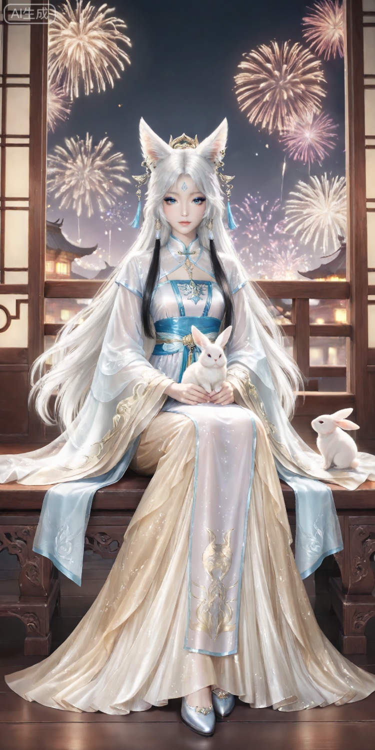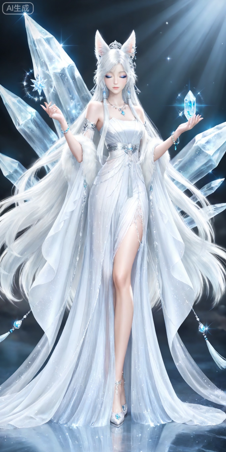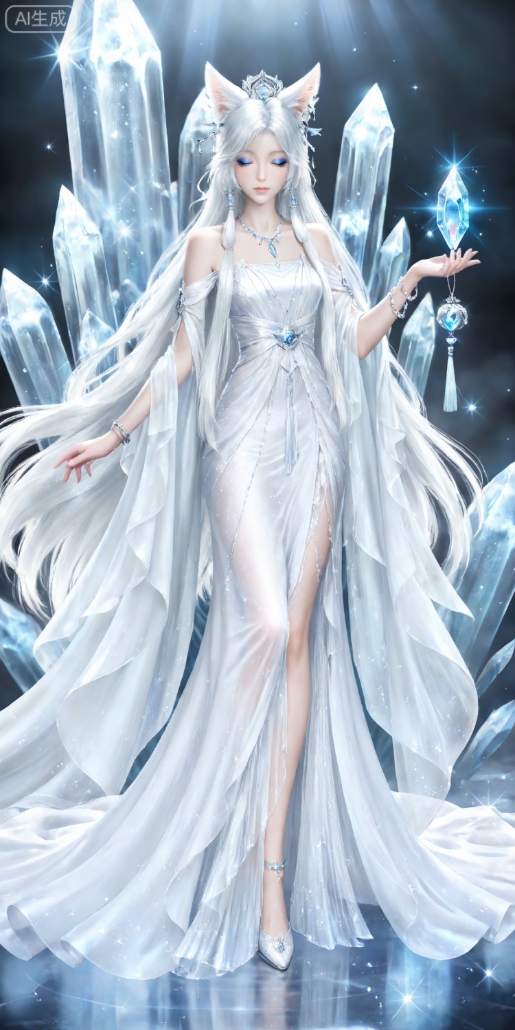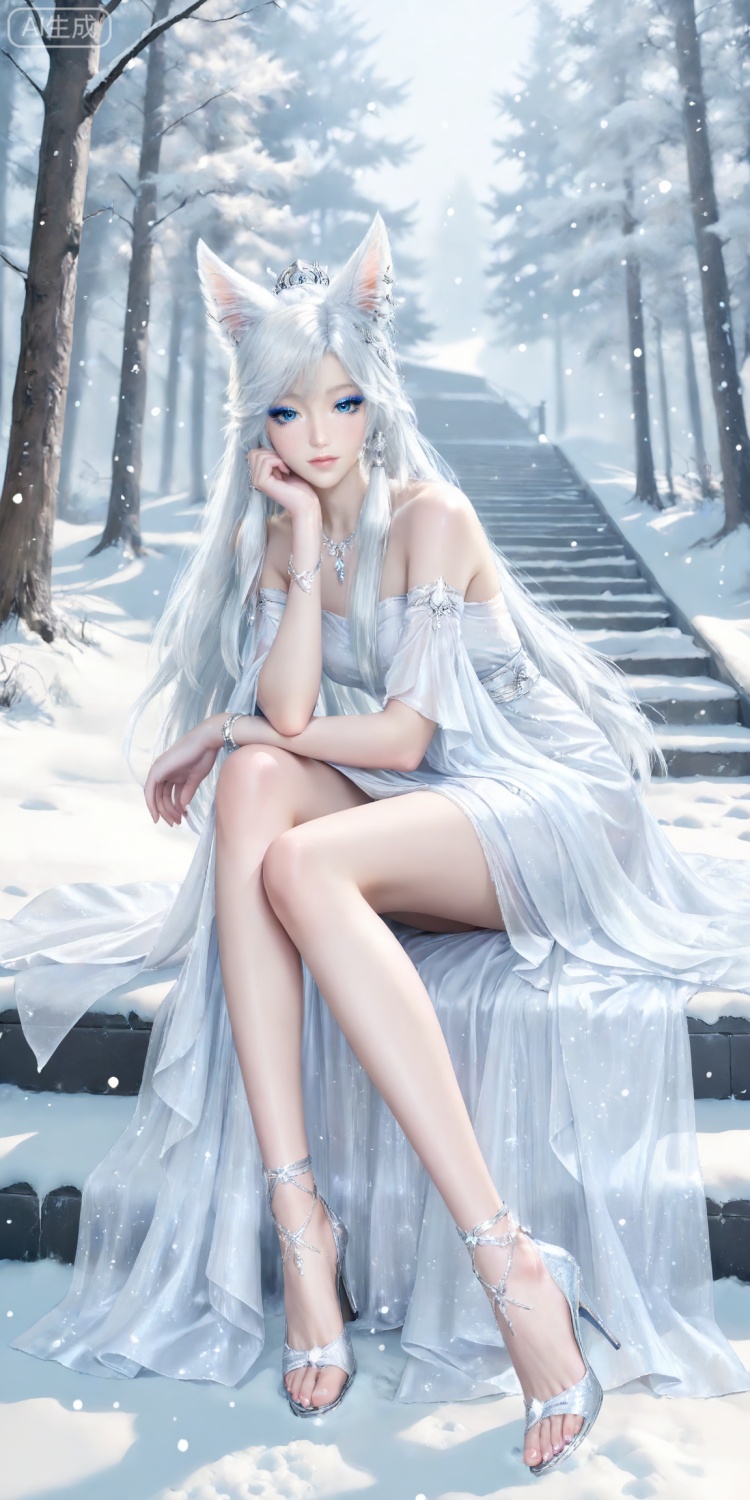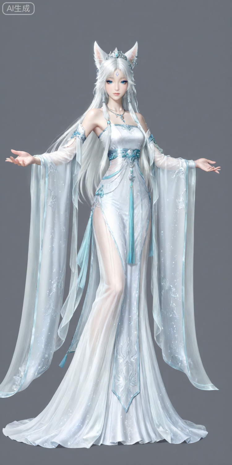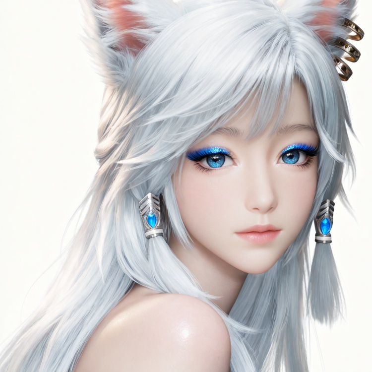 银月面部基础提示词:yinyue,solo,animal ears,blue eyes,1girl,eyelashes,white background,white hair,looking at viewer,earrings,simple background,long hair,jewelry,fox_ears,makeup,lips,eyeshadow,hair tubes,closed mouth,upper_body,bare shoulders,