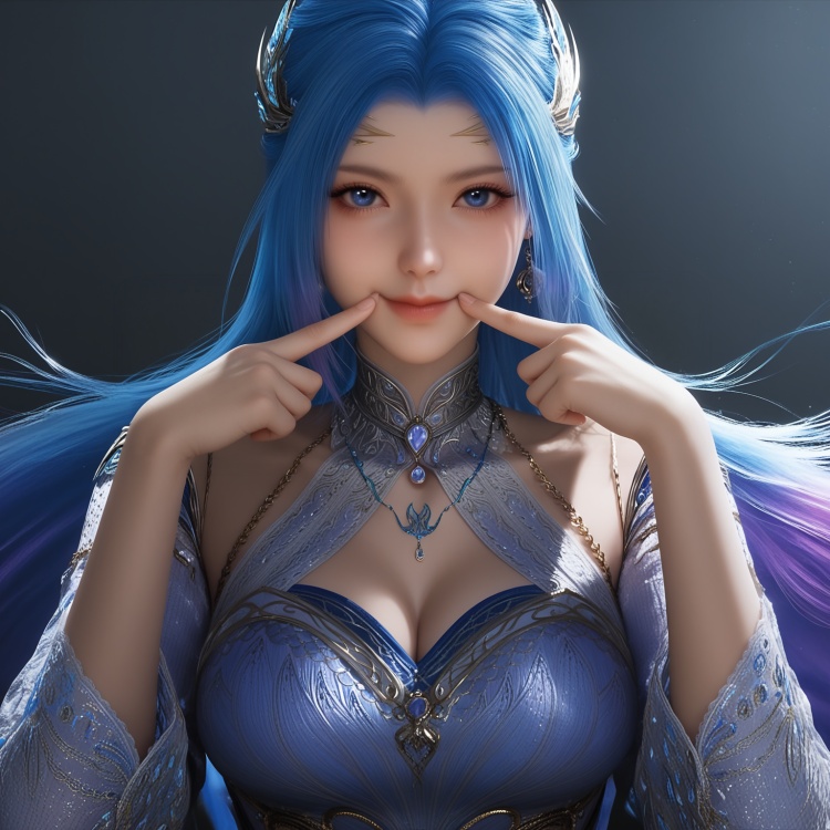 (glamor:1.1),slender,1girl,solo,<lora:唐舞桐-ill-000008:0.82>,long hair,blue hair,hair ornament,gradient hair,blue eyes,jewelry,earrings,necklace,