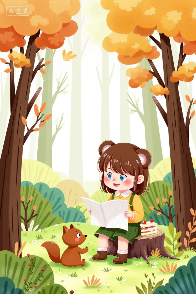 推荐关键词如儿童动物森林童话手绘等,生成想要的画面。